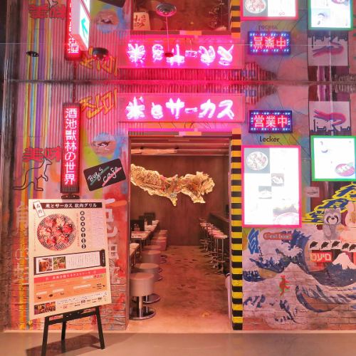 フロアコンセプトは“カオスキッチン”。そのため、実際に提供している鳥獣や色とりどりな多言語のペイント、輝くネオンで埋め尽くした外装がお客様をお出迎えいたします◎非日常な空間ながら居心地も良く、美味しいジビエ料理をじっくりと味わえます♪ジビエ初心者の方も気軽に楽しめますよ!ぜひご来店ください。