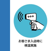 お客様の安心と安全の確保のため、新型コロナウィルス感染拡大防止策のため、「入店時に検温のお願いをしております。」ご理解とご協力をお願いいたします。 ※体調不良のお客様の入店を制限する場合がございます。ご理解とご協力をお願いいたします。