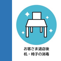 お客様の安心と安全の確保のため、新型コロナウィルス感染拡大防止策に務め、「テーブル・椅子の消毒を行っています。」