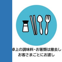 お客様の安心と安全の確保のため、新型コロナウィルス感染拡大防止策に務めるため、「卓上の調味料・お箸類は撤去しお客様ごとにお渡ししております。」