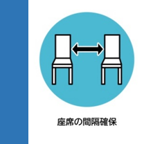 お客様の安心と安全の確保のため、新型コロナウィルス感染拡大防止策に務めるため、「席数を削減し、お席の間隔を十分にとっております。」